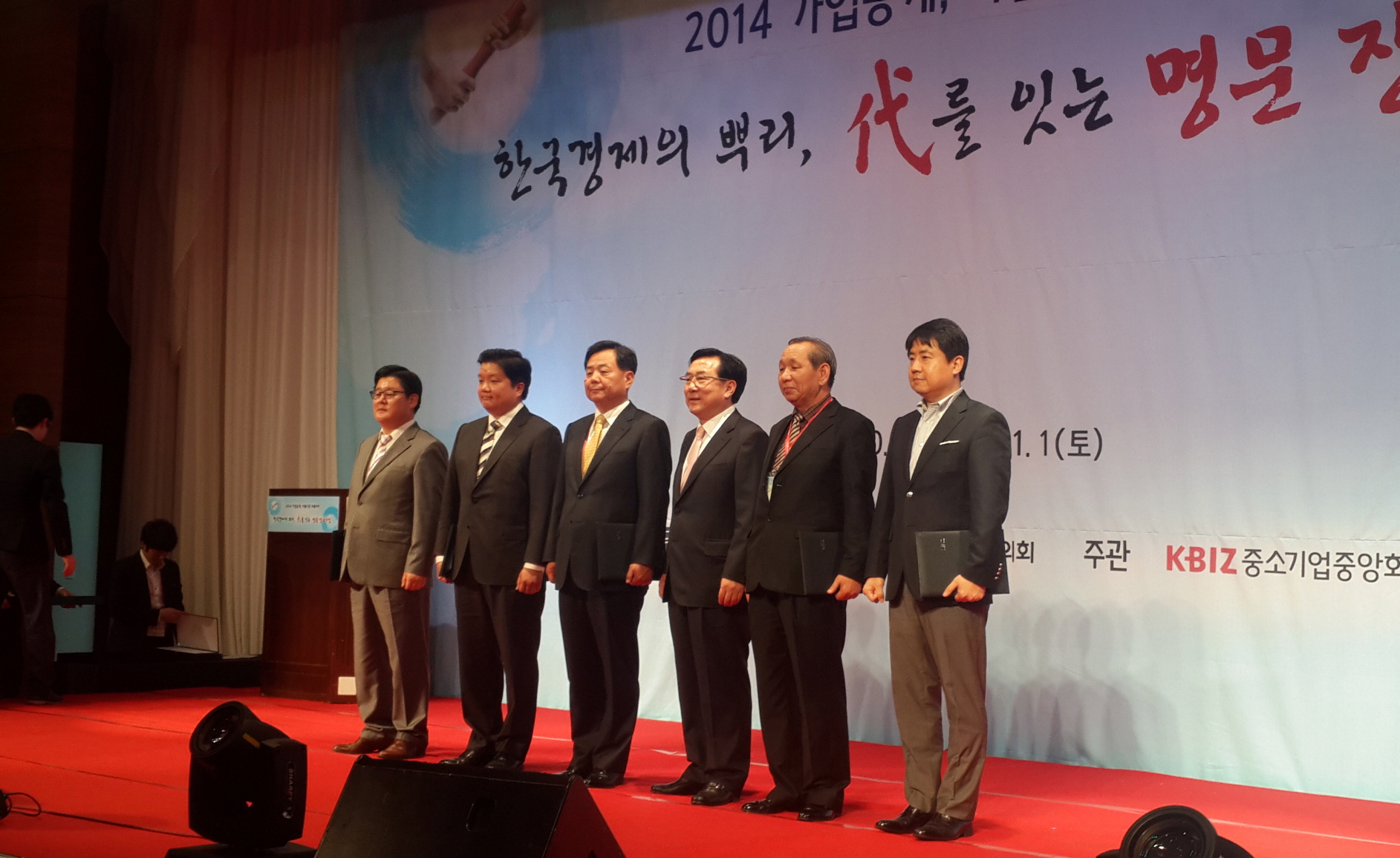 ¸í¹® Àå¼ö±â¾÷ Áß¼Ò±â¾÷Áß¾ÓȸÀå»óÀ» ¼ö»óÇß½À´Ï´Ù. ±×¸®°í ±× ¼ö»ó½ÄÀ» À§ÇØ 2014³â 10¿ù 31ÀÏ Áß¼Ò±â¾÷û°ú Çѱ¹°¡¾÷½Â°è±â¾÷ÇùÀÇȸ, Çѱ¹°æÁ¦½Å¹®ÀÌ °øµ¿ ÁÖÃÖÇÑ ¡®2014 °¡¾÷½Â°è, ¾Æ¸§´Ù¿î ¹ÙÅëÅÍÄ¡¡¯ Çà»ç°¡ ¿©¼ö½Ã µð¿À¼ÇÈ£ÅÚ¿¡¼ ¿·È½À´Ï´Ù.